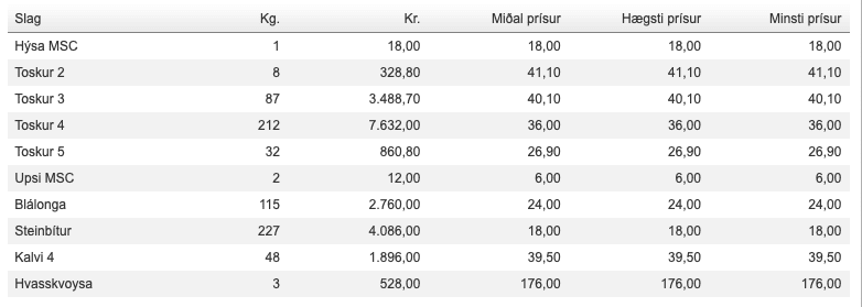 Prísir á Fiskamarknaðinum 3. mars