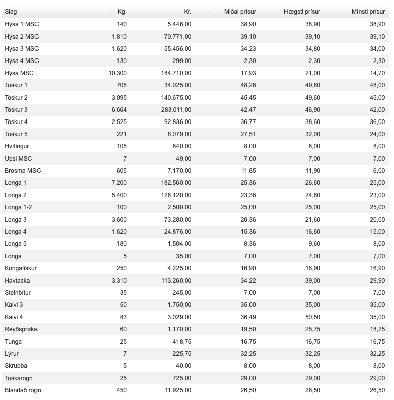Prísir á Fiskamarknaðinum 4. mars
