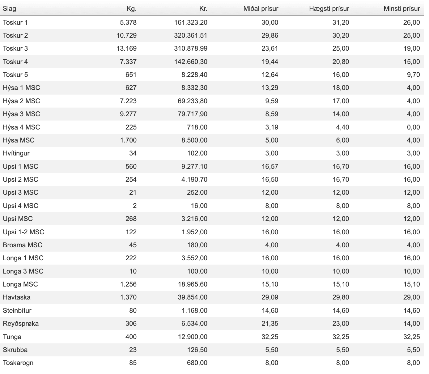 Prísir frá Fiskamarknaður Føroya 11. apríl