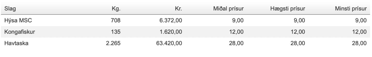 Prísir frá Fiskamarknaður Føroya 8. oktober