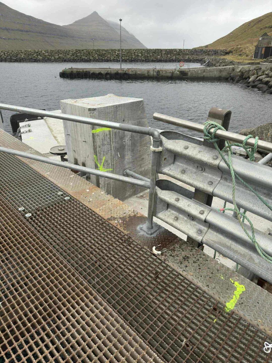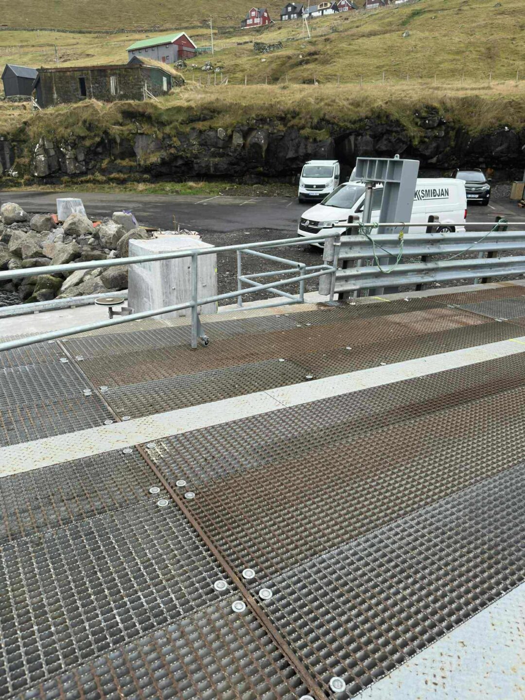 Landsverk og Blikksmiðjan í Klaksvík hava í vikuni sett upp nýggjan gelendara á uttara partin av nýggju rampuni á Syðradali á Kalsoynni.