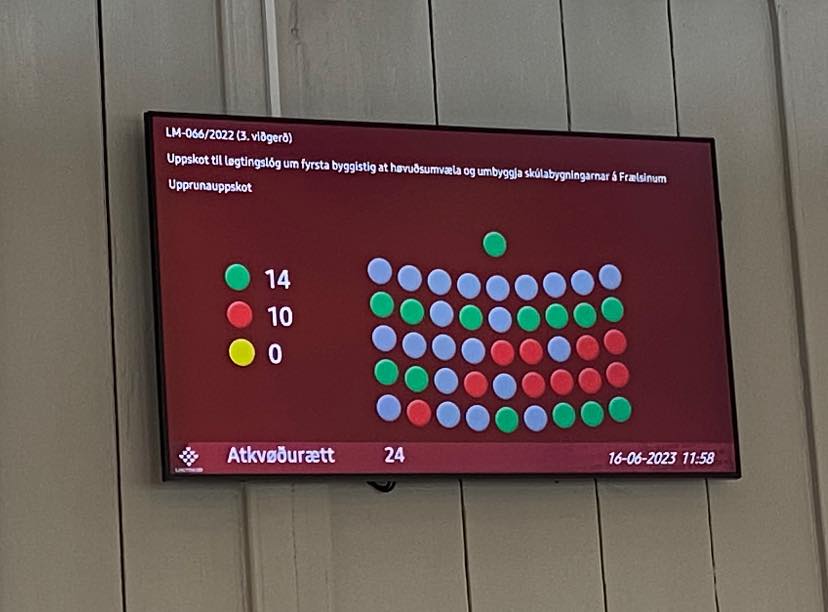 Løgtingið samtykti í morgun, við triðju viðgerð, uppskot um fyrsta byggistig at høvuðsumvæla og umbyggja skúlabygningarnar á Frælsinum.