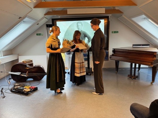 Og so gav Marita Dalsgaard ungu listakvinnunum innrammað heiðursbræv og blómur. – Tað skal ikki hanga eitt burturgoymt stað, lovaðu báðar tvær 🙂
