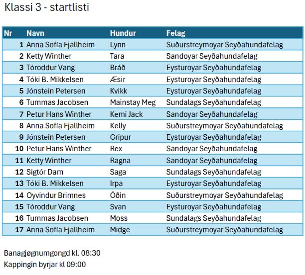Leygardagin 22. novembur verður kappast í klassa 3.