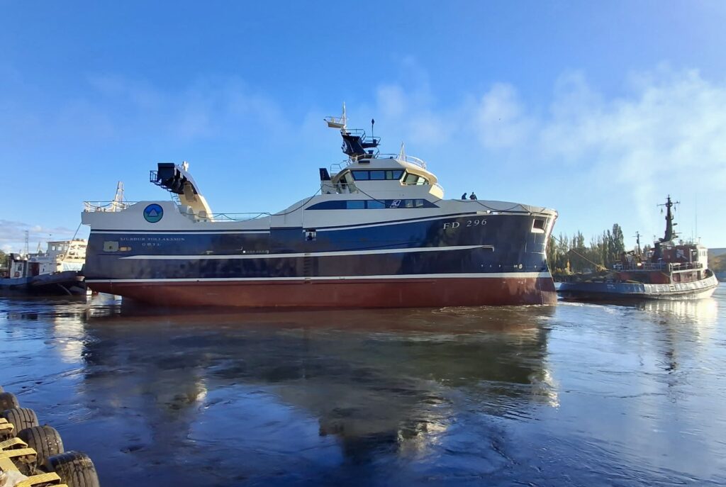 P/F Varðin upplýsir í dag, at skrokkurin á Sjúrði Tollakssyni, sum er liðugtgjørdur á Stozcnia Wisla skipasmiðjuni í Gdansk í Póllandi, verður nú sleipaður til Skagen, har hann verður væntandi mikudagin.
