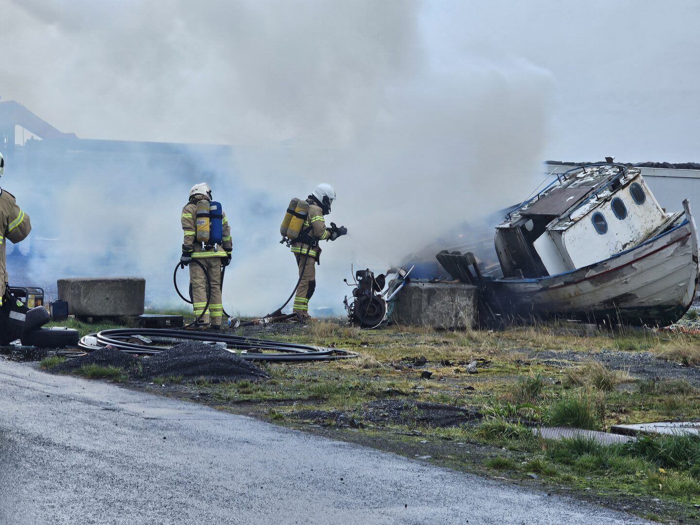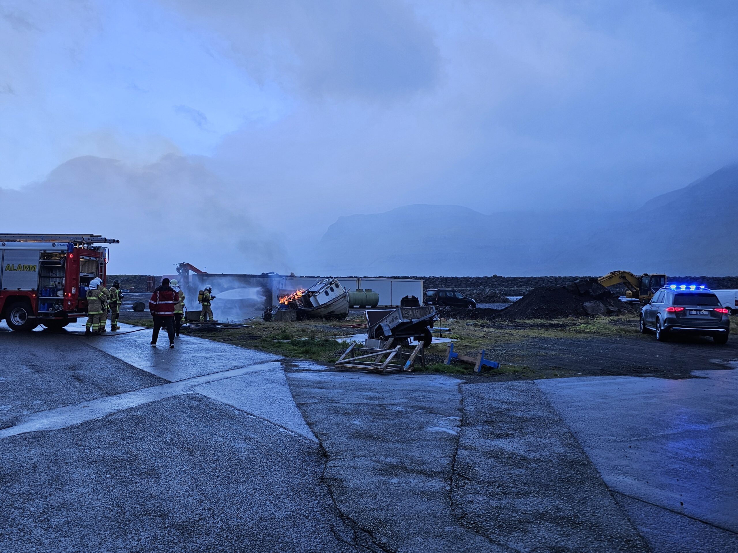Tað var Sløkkiliðið hjá Eysturkommunu sum í kvøld hevði eina sløkkiliðsvenjing, har teir vóru boðsendir at sløkkja ein eld sum var í einum gomlum útróðrarbáti sum stóð á landið.