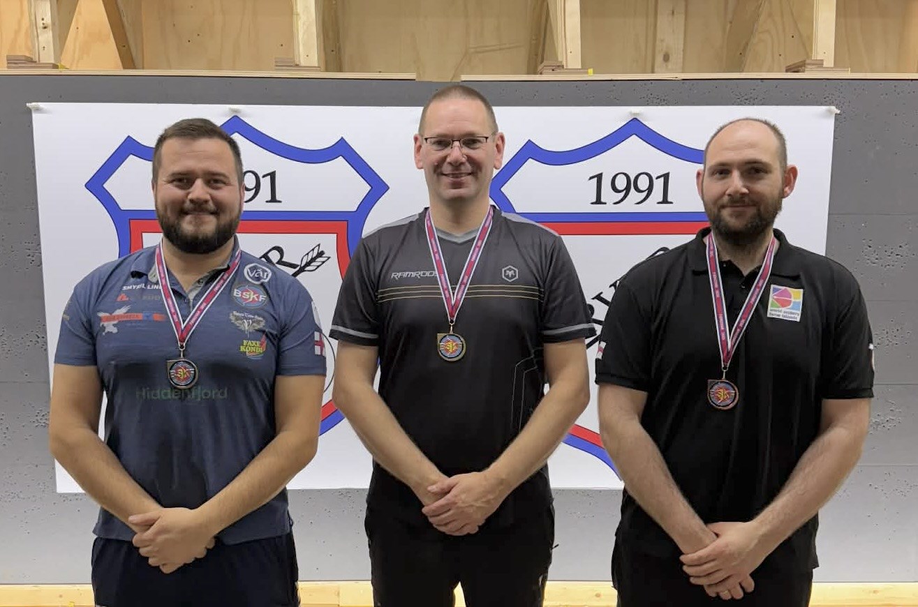 Menn compound. Nikkel Petersen (Ørvur), silvur, Jóannes Poulsen (Ørvur), gull, og Kaj Johannesen (Ørvur), bronsu