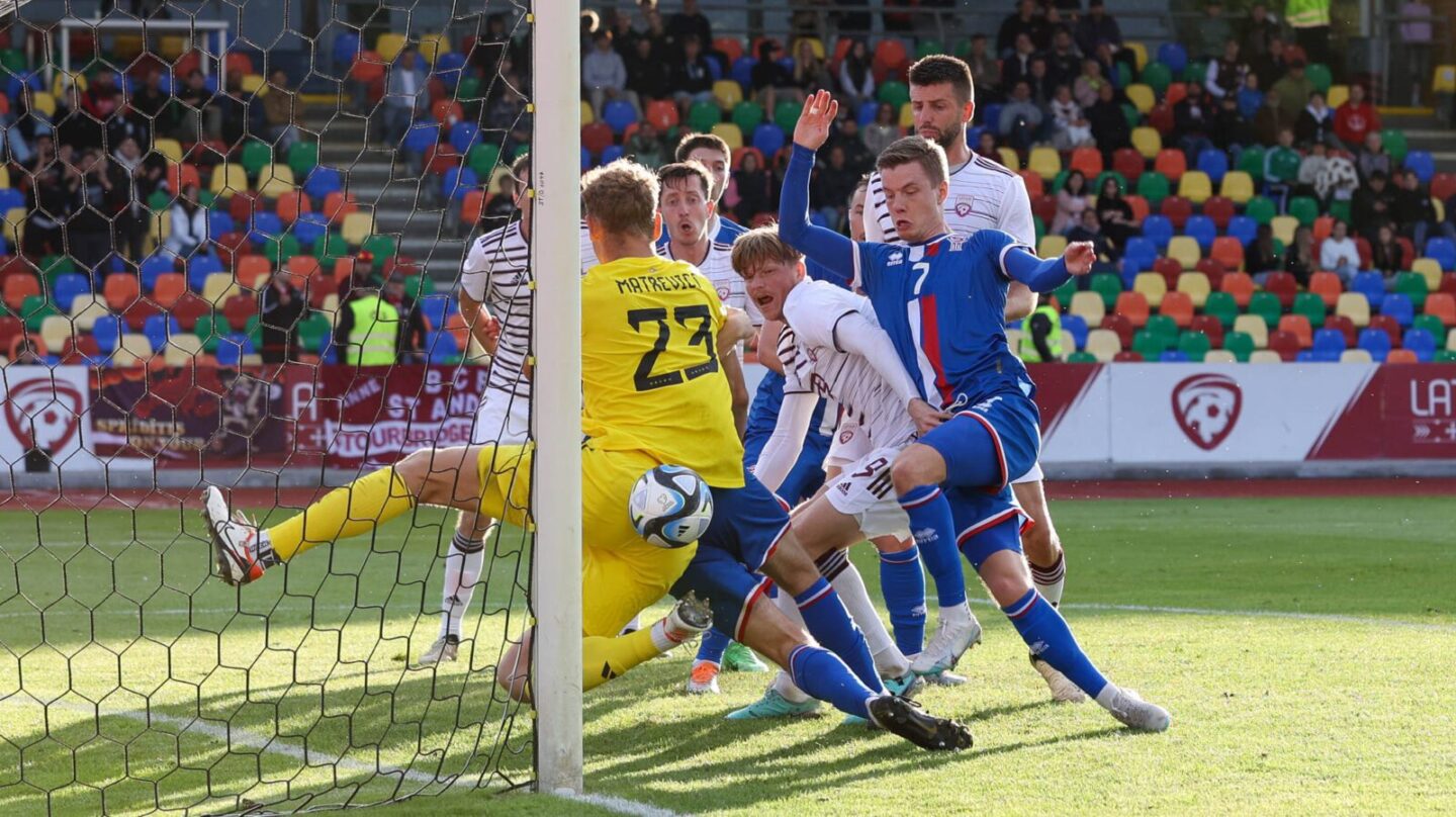 Baltic Cup fyri tveimum árum síðani. Petur Knudsen stríðist frammanfyri lettlendska málið - Mynd: Hans Erik Danielsen/FSF