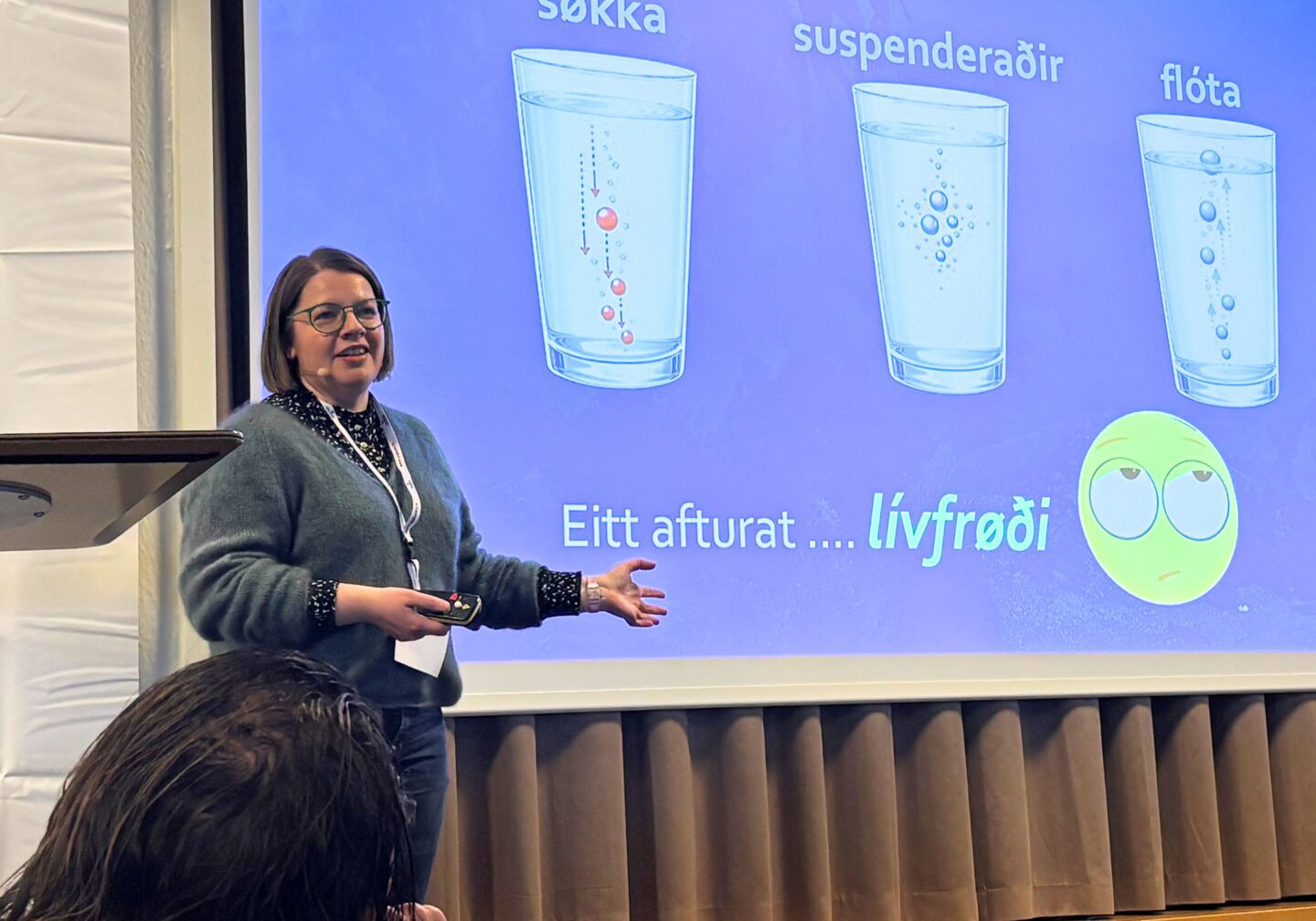 (Mynd: Birgitta Andreasen heldur framløgu á árligu Aliráðstevnuni, Firum)