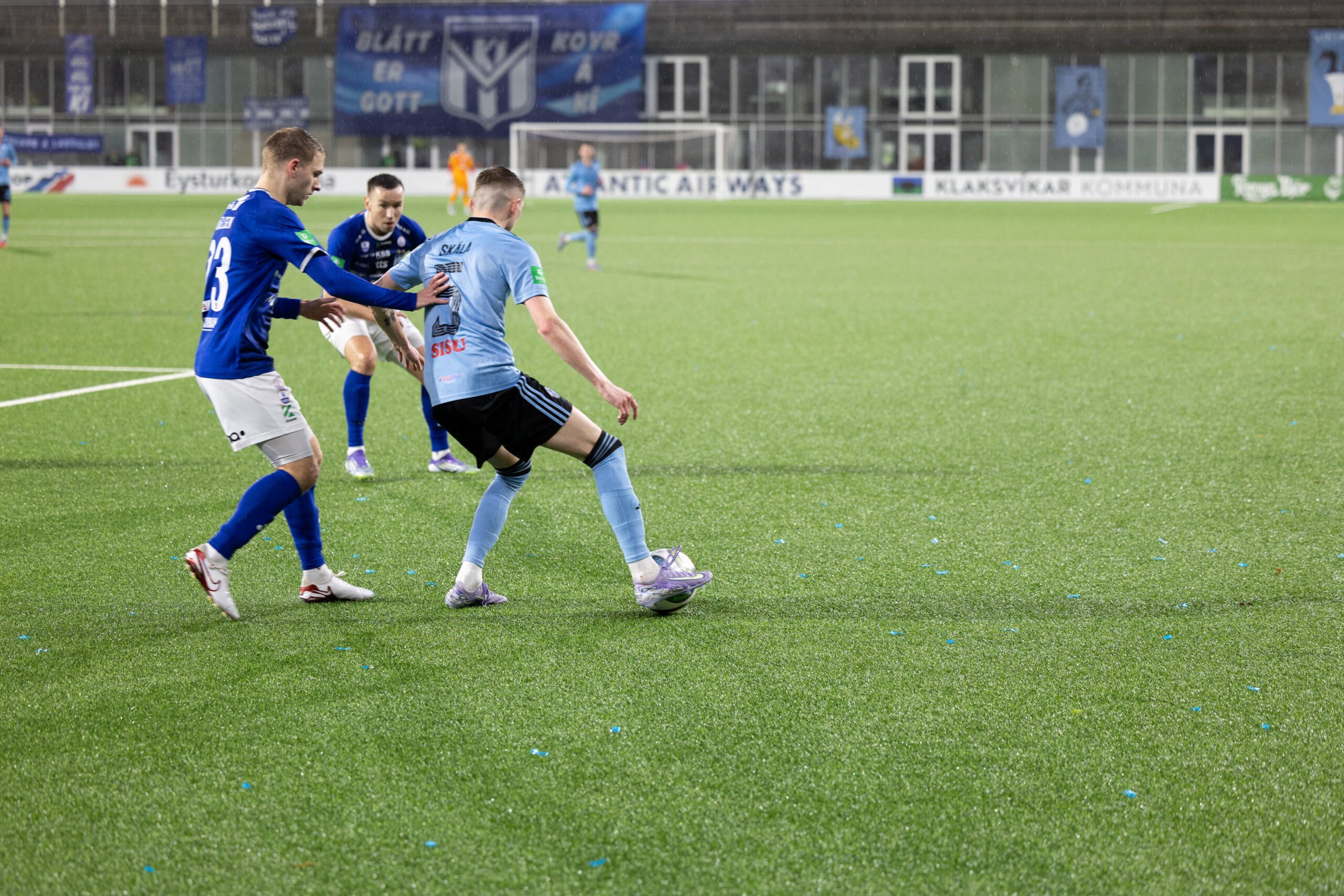 KÍ, sum var stórfavorittur undan dystinum og hevði mestsum eitt heilt lið av A-landsliðsleikarum í hópinum, vann í kvøld ein 2-0 sigur á einum lutfalsligum ungum og óroyndum Víkingaliðið, sum heldur ongantíð veruliga raktu “dagin”.