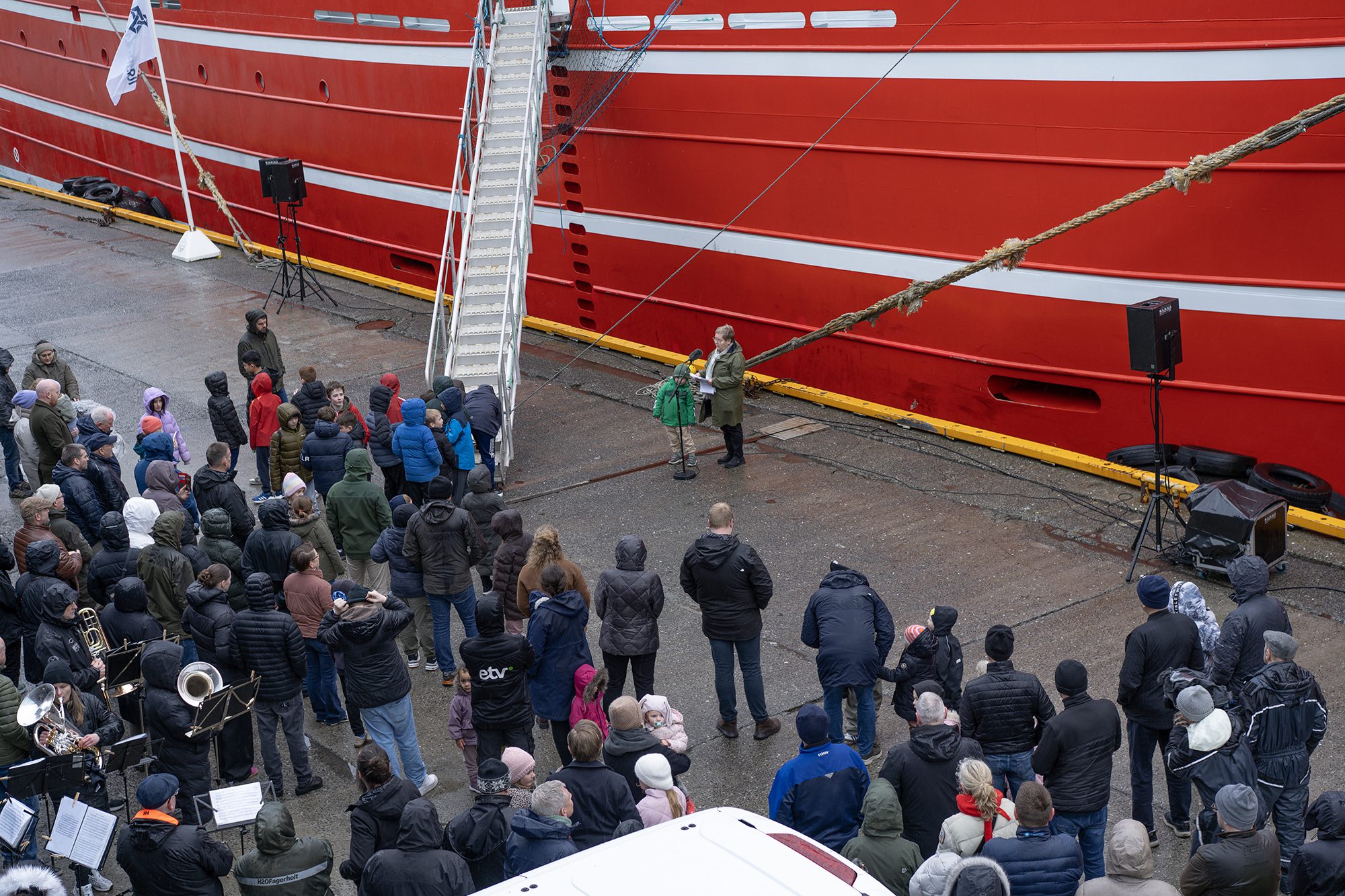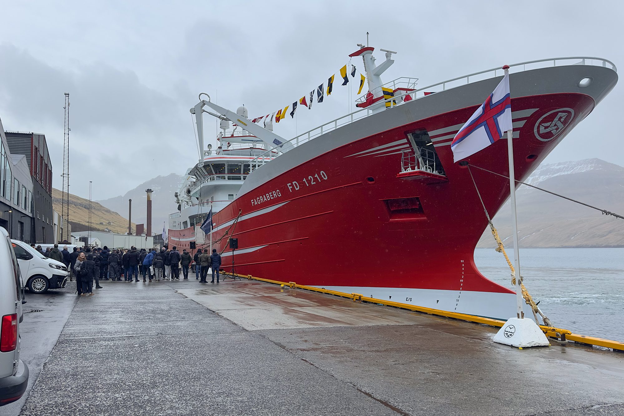 Nógv fólk vóru komi at taka ímóti nýggja stásiliga skipinum, sum eftir ætlan fer til fiskiskap beint eftir páskir.