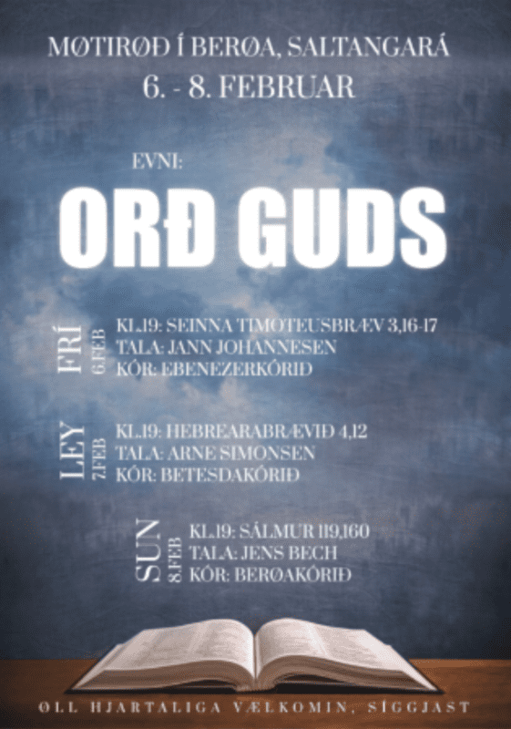 “Orð Guds” Møtirøð 6.-8. í Berøa, Saltangará