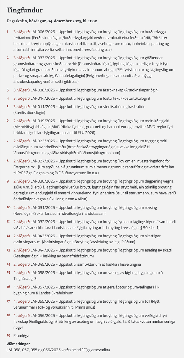 Tingfundur í dag: M.a. 3.viðgerð av fosturtøkulóguni