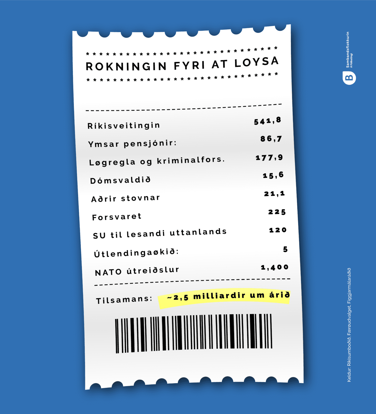 Loysingarætlanirnar hjá samgonguni og Fólkaflokkinum kosta sostatt 2,5 milliardir krónur hvørt einasta ár.