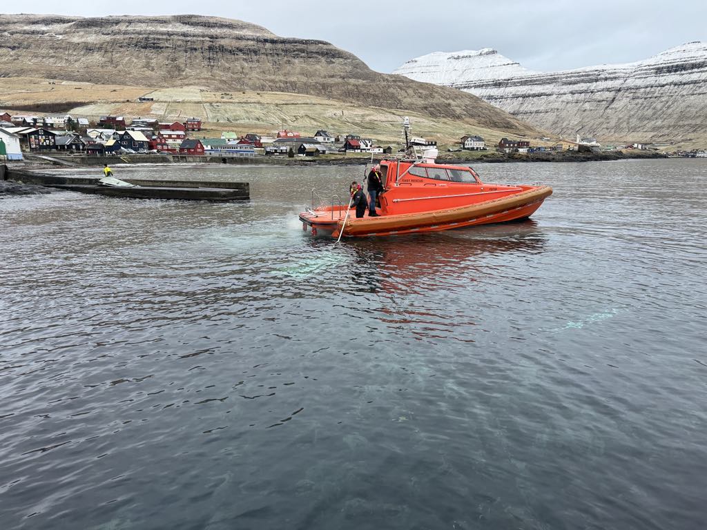 Í dag vóru menn frá sløkkiliðnum úr Eysturkommunu, við nýggja bjargingarbátinum, og tóku órudd upp úr sjónum eftir stormin sum varð í síðstu viku.