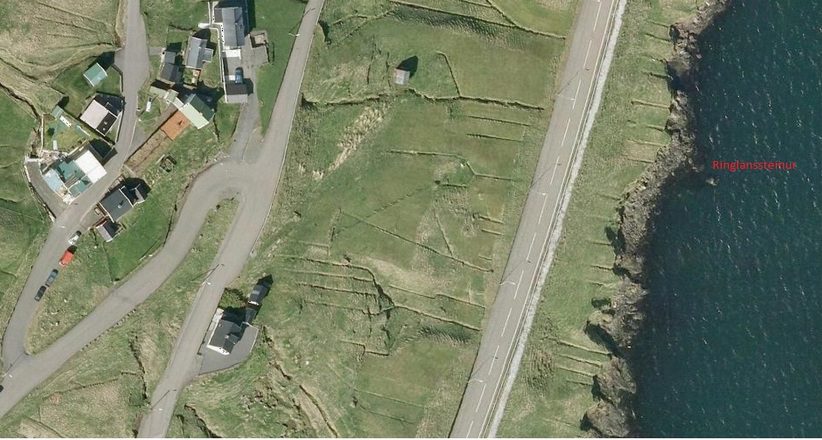 Ringlanssteinur er ikki longur sjónligur. Men á myndini sæst hvar hann einaferð var.