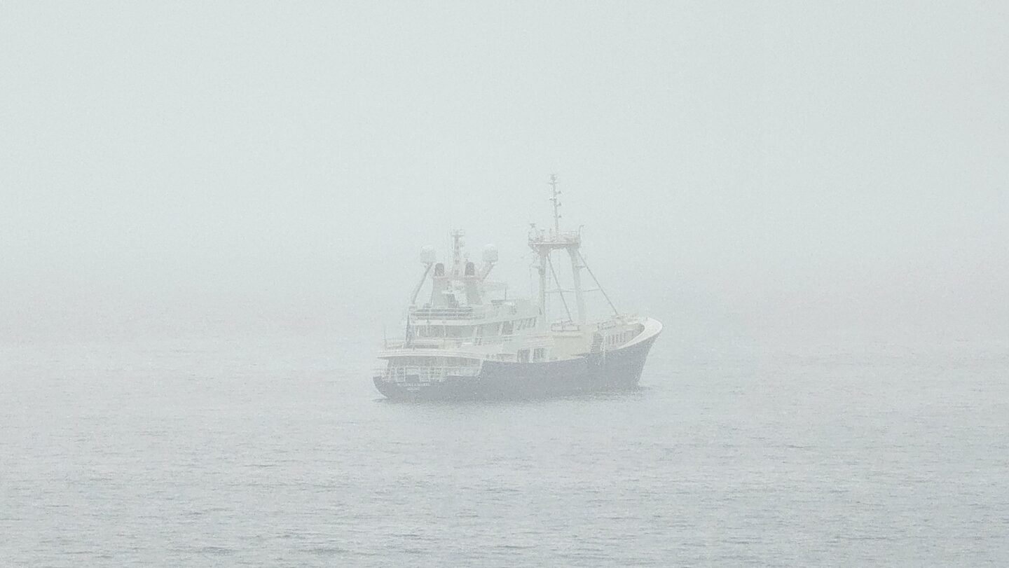 Í tjúkka mjørkanum í dag, hevur ein trawlari ligið langt inni móti landinum á Gøtuvík. Nakað sum hevur fingið lokalfólkið at práta og hugleiða um hvat hetta er fyri eitt forkunnugt skip.