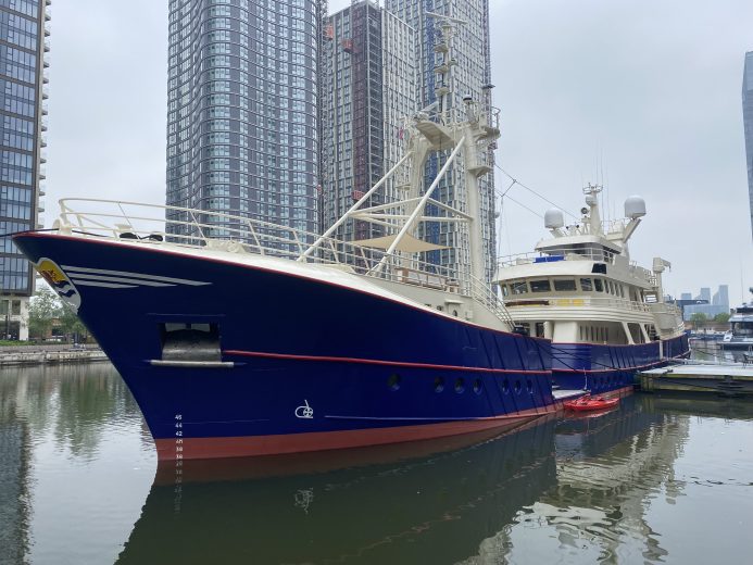 Tað vísir seg, at hetta er ein umbygdur marglætis trawlari, sum eitur Scintilla Maris, sum niðurlendingurin Erik Vonk eigur. Og sum siglir undir Marshall Islands flaggið.