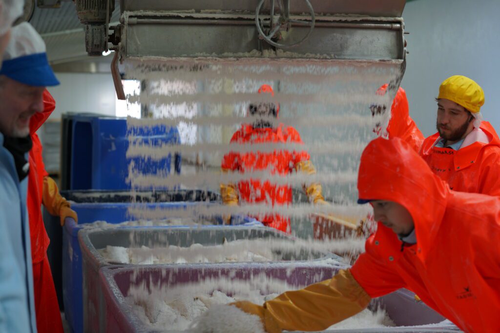 Byrja verður í endanum av byggninginum, í suður endanum, har ráfiskurin verður tikin inn á virkið. Sum oftast, er tað frystur fiskur, sum verður keyptur. Síðani verður fiskurin tinaður, og síðani koyrdur inn á virkið, har hann verður flaktur, síðani lakaður, saltaður og at endan pakkaður. Aftaná er hann so klárur at verða sendur til kundan uttanlands. Sjálv tilgongdin, frá tí fiskurin er keyptur, til hann liggur hjá kundanum tekur nakrar vikur.