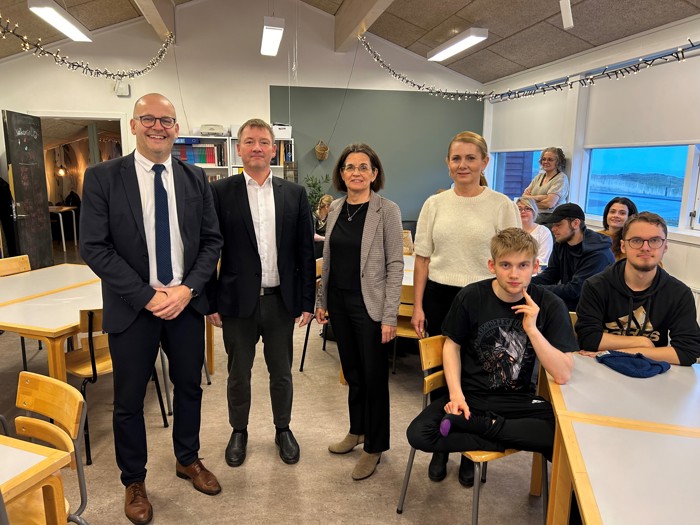 Djóni Nolsøe Joensen, landsstýrismaður, hevur vitjað Serbreytina og Hægri Nám á Glasi. Una Joensen, rektari, tók ímóti saman við Finn Jensen, dekani fyri Hægri Nám, og Katrin Kvilt Olsen, samskipara á serbreytartoyminum.